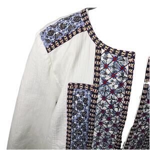 CHICOS Size 3 16/18 Cotton White Beads Sequins Embroidered Open Quilt Jacket