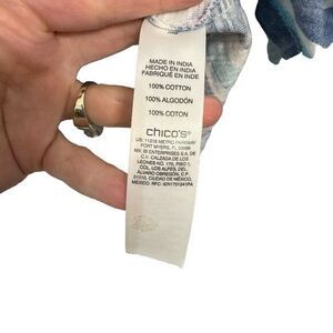 CHICOS Size 3 US XL Geometric Print Cotton Knit Top 3/4 Length Roll Tab Sleeves
