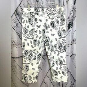 CHICO’S So Slimming Cropped Ankle Jeans White Black Paisley 2 (L12)