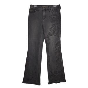 CHICO'S So Slimming Girlfriend Flare Leg Black Embroidered Jeans Sz 6R 30x31
