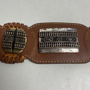 CHICO’S Southwest Brown Leather Belt Size Small/Med Chunky 39” Length 2.5” Wide