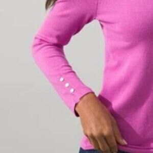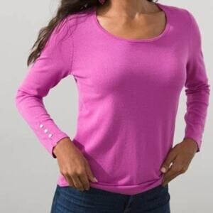 CHICO'S Spun Rayon Button Detail Sweater In Orchid Blossom