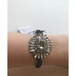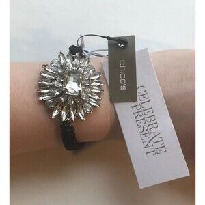 CHICO'S Starburst Rhinestone Crystal & Black Stretch Band Bracelet NEW