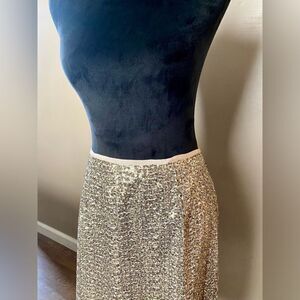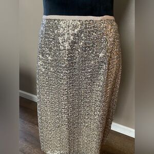 This NEW with tags Chico’s skirt is so pretty—the Stephanie pencil skirt with gold sparkle sequins, sold out online. Size 1 (Chico’s sizing) (according to their website is a M/8)