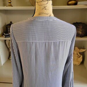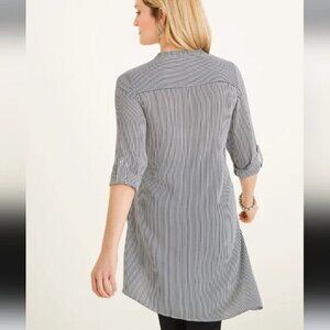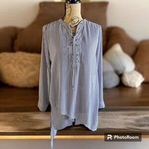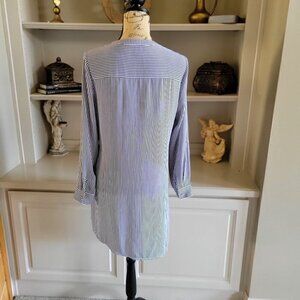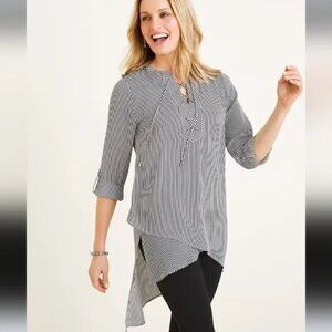 Tunic length with relaxed, ●away-from-the-body fit, 3/4-sleeves, high-low hem, and Split neckline with lace-up details.