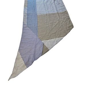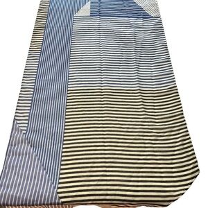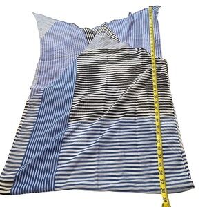 Blue and white varying size and direction stripes. The navy blue sections are almost black.