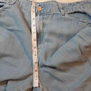 CHICOS Sz 1 8 Crop Women Platinum Collection Chambray Lightweight Wide Leg Pants