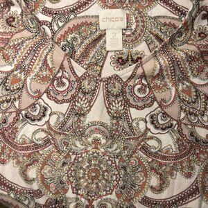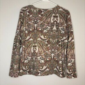 CHICOS Sz 2 VNeck Pink Paisley Stretch Long Sleeve Tee