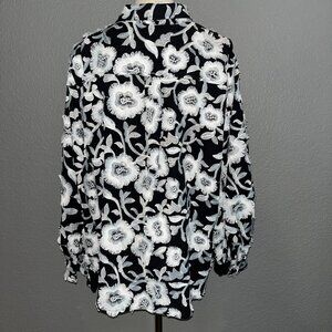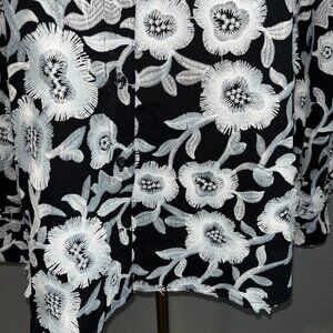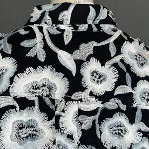 CHICO'S TEXTURED FLORAL EYELASH EMBROIDERED BISHOP SLEEVE BUTTON SHIRT BLOUSE 16