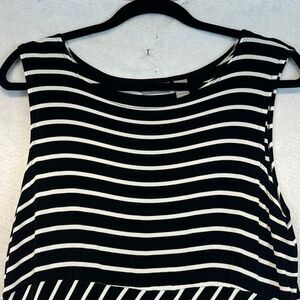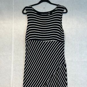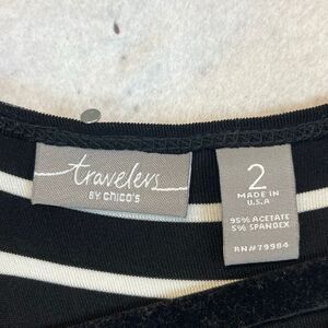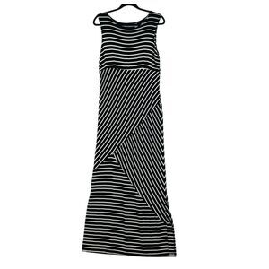 CHICO'S TRAVELERS Dress Womens Size 2 Large Black White Simone Long Maxi Striped