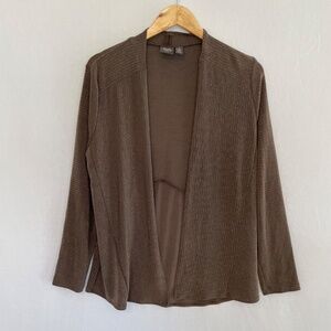 CHICO’S TRAVELERS Size 1 US Medium Open Front Dark Tan Metallic Thread Cardigan