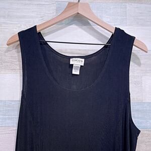 CHICOS TRAVELERS Stretchy Midi Tank Dress Black Vintage Acetate Womens Large 2