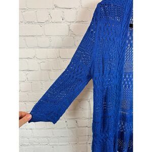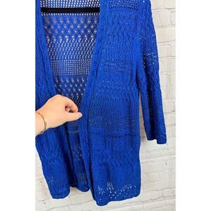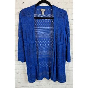 CHICO'S TRAVELERS royal blue cotton blend knit open front cardigan sweater 1 M
