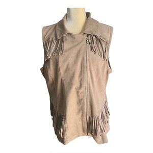 CHICO'S Tan Faux Suede Vest with fringe western cowgirl Sz 3