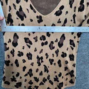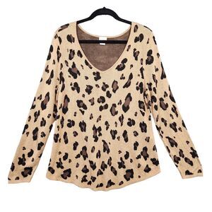 CHICOS Tan Leopard Animal Print Long Sleeve V-Neck Sweater SIZE 2 US LARGE