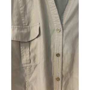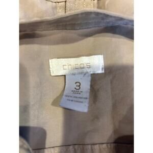 CHICO'S Tan V Neck Lightweight Button Long Sleeve Travel Blouse Size 3 LARGE