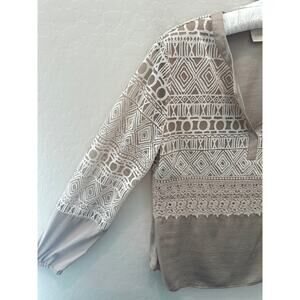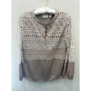 CHICO’S | Taupe Neutral Textured Semi Sheer Boho Long Sleeve Peasant Top | Small