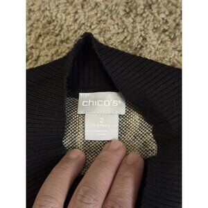 CHICOS Tipped Mock Neck Tunic Leopard Print Cotton Cashmere Blend Bohoglam LARGE
