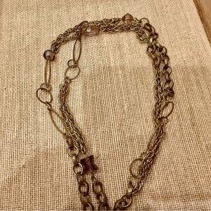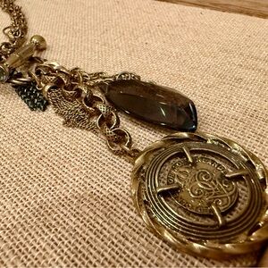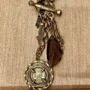 CHICO’S Toggle Necklace with Chain dangles and Smokey Topaz type charm. Lots of fun character to this vintage necklace. The toggle even has crystal tips. Five star seller.