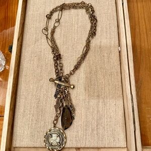 CHICO’S Toggle Necklace with Chain dangles and Topaz charm
