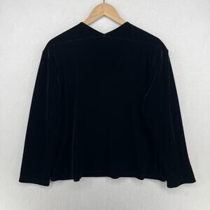 CHICOS Top 3 XL DESIGN Velvet Velour V-Neck Long Sleeve Blouse Black USA VTG