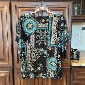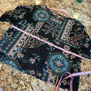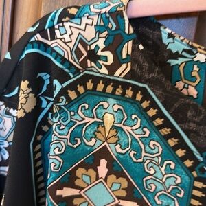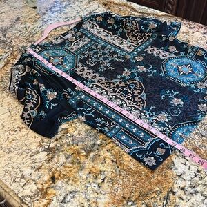 Very nice, Preowned cond. Flutter sleeves. Great pattern, great colors! Size 2/L/12.