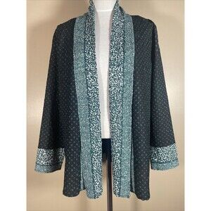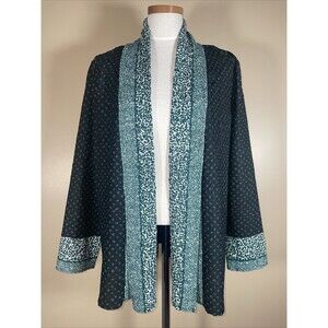 CHICOS Travelers 2 Jacket L / 12 Open Front Crinkled Emerald Green Polka Dot
