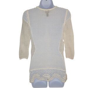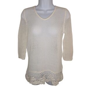 Excellent pre-owned condition. No flaws to note. Women's CHICO’S Travelers Collection Off-White 3/4 Sleeve Crochet Sweater Size 1 Small.