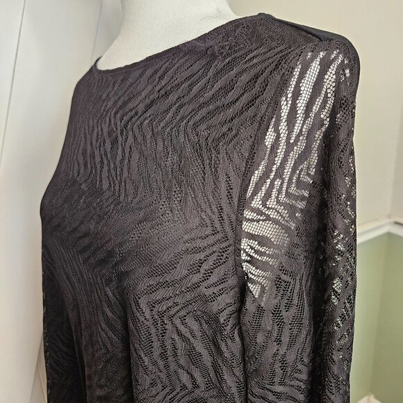 Chico's Travelers Collection Black Lace Long Sleeve Asymmetrical Hem Dressy