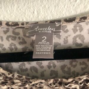 CHICO'S Travelers Leopard Animal Print Ruffle Top Sleeveless Shirt Size 2