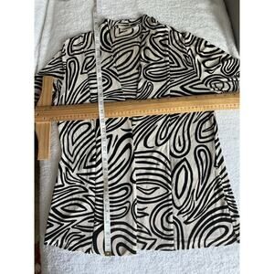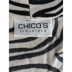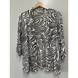 CHICO'S Travelers Open Front Cardigan Wrap Layer Jacket Black White Artsy Sz M