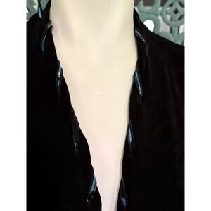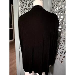 CHICO'S Travelers Open Front Cardigan-Slinky Black Knit w/Blue Ribbon-L/S Size 3