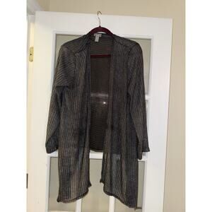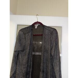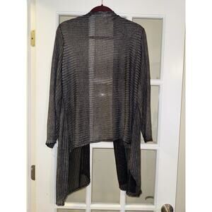 CHICO'S Travelers Silver Shimmer Mesh Open Jacket Cardigan Top Sz 2 Drape Front