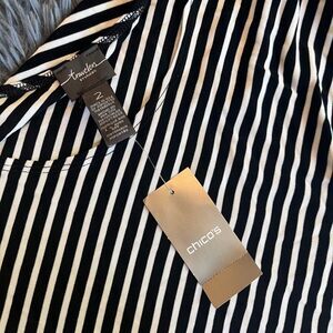 CHICO'S Travelers Summer Stripe Short Sleeve Maxi Dress Black & White NWT Size L