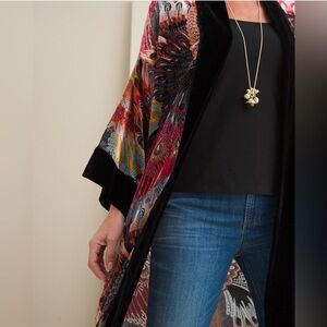 CHICO’S Travelers Women’s Velvet Peacock Long Kimono Open Front Size Large/XL