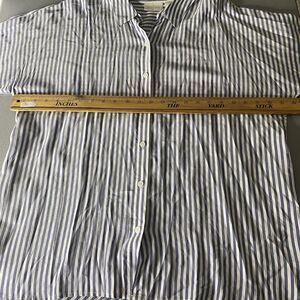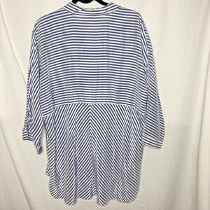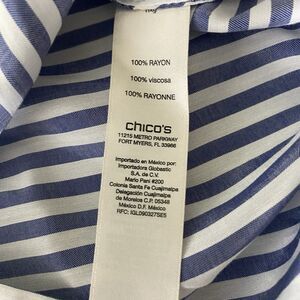 CHICO'S Tunic Button Down Striped Rayon Oversized 3/4 Sleeve XL Womens 2 Blue