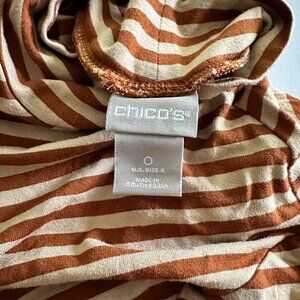 CHICO'S Tunic Shirt Size 0 Small Brown Striped Asymmetric Long Sleeve Stretch