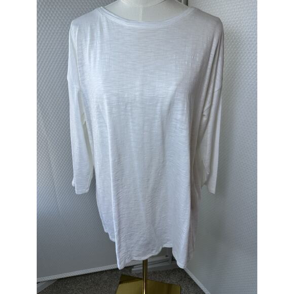 CHICOS Ultimate Tee White V Neck 3/4 Sleeve Cotton Modal High Low Large 2