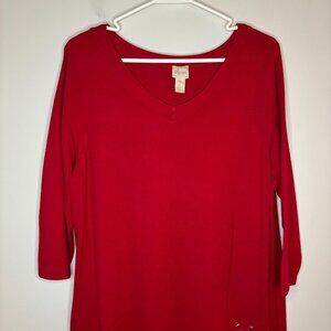 CHICO'S V-Neck Tunic Womens L 3/4 Sleeve Red Lace Up Detail