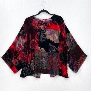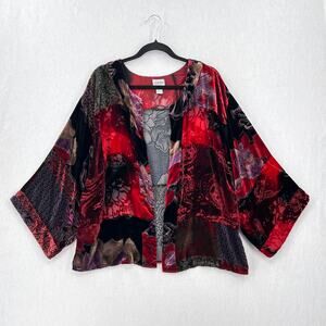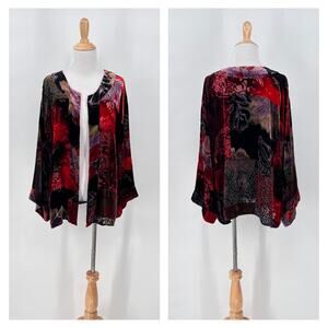 CHICOS Velvet Burnout Patchwork Floral Jacket Womens XL Black Red Kimono