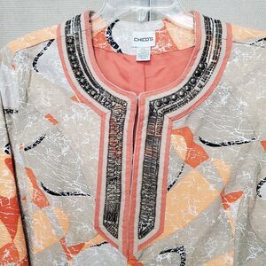 This is a CHICO'S Vintage 100% Cotton Embellished Beaded Abstract Print Blazer Size 3 (XL)
