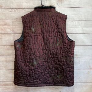 EXCELLENT CONDITION CHICOS WINE QUILTED VEST WITH BLACK RABBIT FUR TRIM