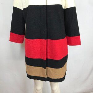 CHICO'S ~ WOMENS 2 PETITE ~ FULL ZIP WOOL COLOR BLOCK STRIPE DUSTER JACKET
