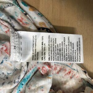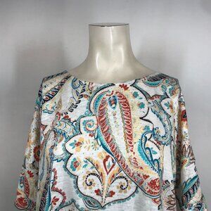 CHICO'S- WOMEN'S 3/XL - WHITE PAISLEY SHORT SLEEVE ROUND NECK LINEN TOP SHIRT