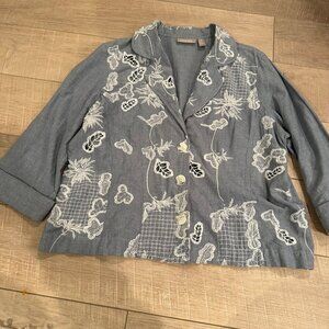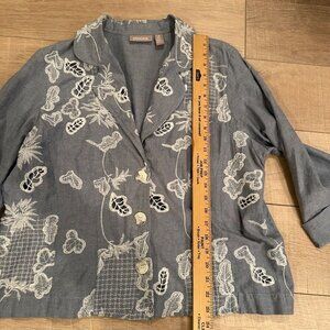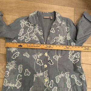 CHICOS WOMENS BLUE DENIM COLOR FLORAL SIZE 3 SHIRT US SIZE 16