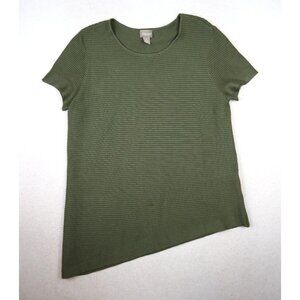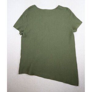 CHICO'S WOMEN'S GREEN RIBBED SHORT SLEEVE ASYMMETRICAL SWEATER - SIZE 1