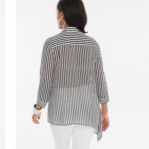 CHICO’S White Black Striped Asymmetrical Hem Button Down Tunic Shirt Size 3P