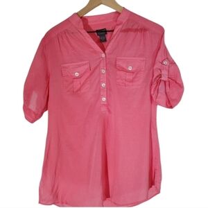 CHICO'S Woman's Top Size Med (Chico's 1) Pink Blouse 100% Cotton