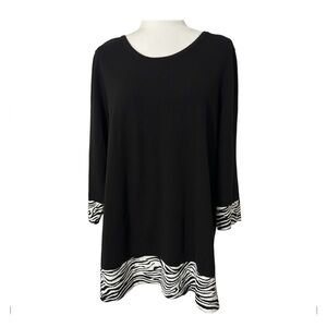 CHICO’S Women Top Tunic Zebra Border Scoop Neck Pullover 3/4 Sleeve Black Size 3