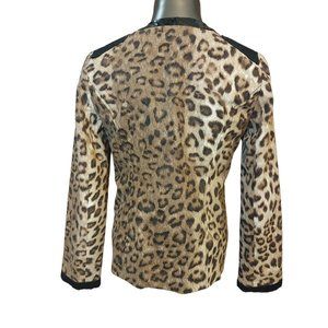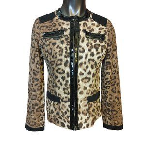 CHICOS Womens 0/M Matilda Leopard Print Faux Patent Trim Accent Jacket Pockets